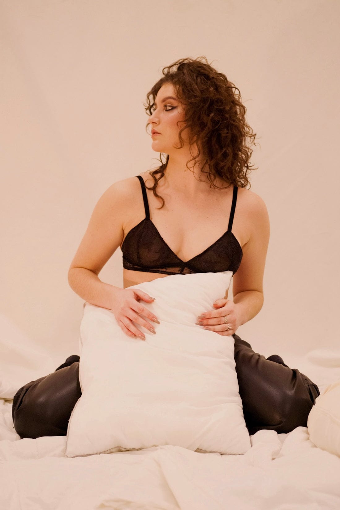 Feel free in your skin wearing Danlavore designed simple black lace brallete.